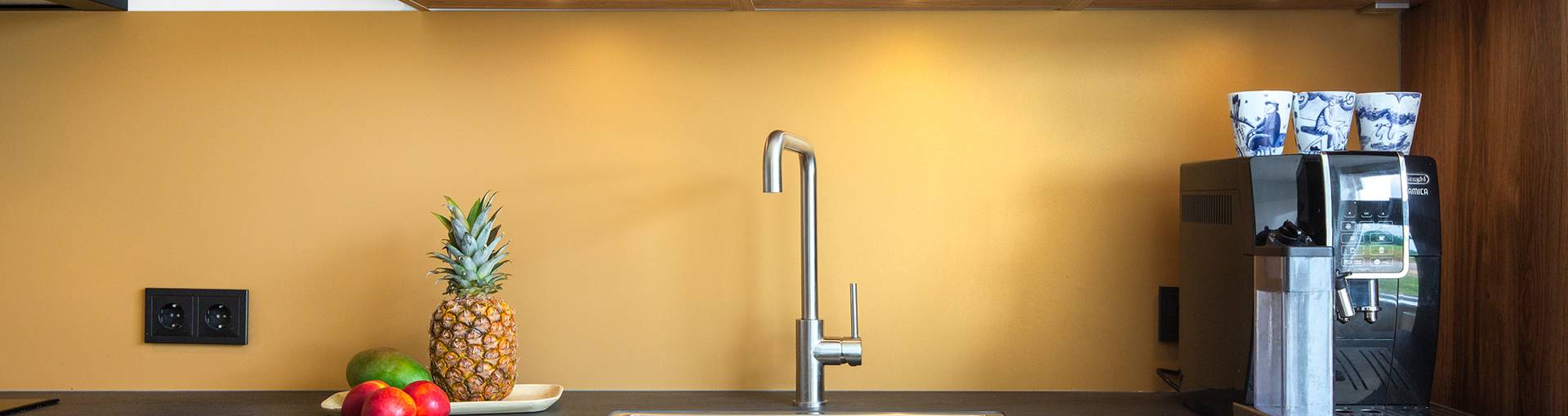 The Bokmerk Basic Colours Line splashback is easy to clean and is unbreakable, scratch and impact resistant and low maintenance. Moreover, the stain (or smear) plinth can be easily cut to size using proper tools. Your Bokmerk dealer will be pleased to do this for you.